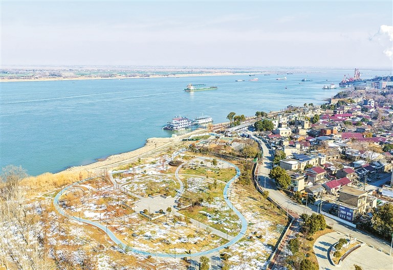 近年来,安徽省芜湖市繁昌区加强保护长江水域的生态环境,严格落实河长制工作职责,坚持生态优先、绿色发展,持续改善长江繁昌段生物多样性,不断推动长江经济带高质量发展。图为近日拍摄的繁昌区新港镇长江岸线。