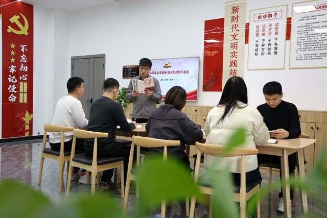 河南省周口市淮阳区纪委监委以“集中+自学”“研讨+交流”等多种形式,推动纪检监察干部提升政治素养。图为该区青年纪检监察干部分享党史故事,学习先辈革命精神。李昆源 摄