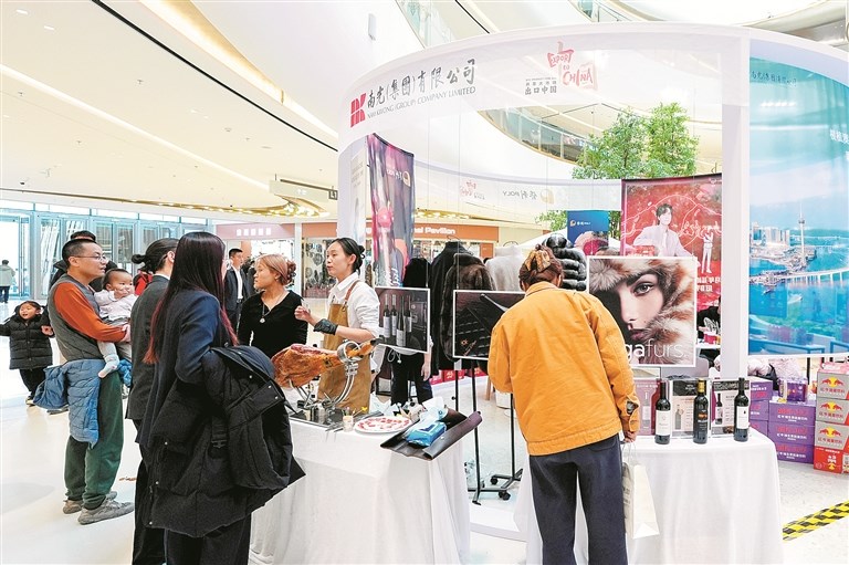 “共享大市场·出口中国”2026年首场活动暨北京国际精品荟启动活动近日在湾里·王府井WellTown举行,现场打造了“一站式”全球好物采购展区,为市民新春消费注入活力。图为参观者在进口商品推介区参观展出的各国商品。 新华社记者 鞠焕宗 摄