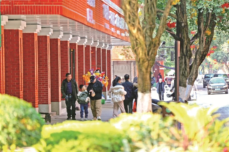近年来,重庆市万盛经开区把“中国式现代化,民生为大”理念贯穿城市规划、建设、运营、治理全过程各环节,有效改善老旧小区人居环境,一幅“旧貌换新颜”的宜居画卷正徐徐绘就。图为经过改造更新后的建筑与街道显得靓丽一新,市民漫步其间享受新春乐趣。图片来源:视觉中国