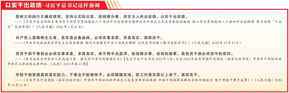 大道至简,实干为要。今年是“十五五”开局之年,广大党员干部要以正在开展的树立和践行正确政绩观学习教育为契机,将重实干、做实功、求实效的政绩观铭记于心、落实于行,切实把党中央决策部署转化为发展实效、民生福祉。
