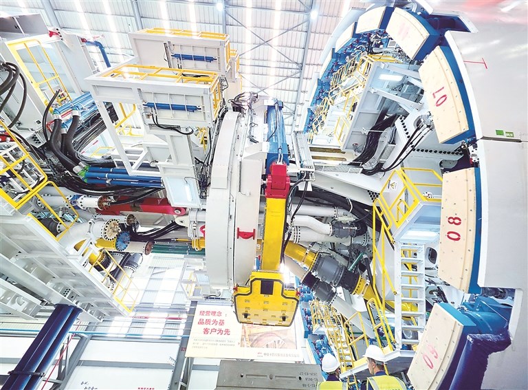 近年来,我国通过政策引导、机制创新、创新生态优化,促进人才、资金、技术等创新要素加速向企业流动,培育了一批核心技术能力突出、创新能力强的科技领军企业和高新技术企业,引领带动产业向全球价值链高端攀升。图为江苏南通,由中铁十四局与铁建重工集团联合打造的超大直径盾构机“奋楫号”在南通通州湾示范区下线。 图片来源:视觉中国