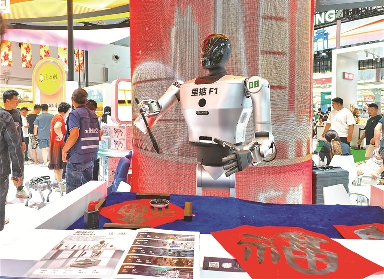 近年来,“数字”触角日益延伸至人们生活的每一个角落,从田间到车间、从衣食住行到娱乐消费,一幅生机盎然的生活新图景正在徐徐绘就。图为在海南海口举办的第六届中国国际消费品博览会上,一款智能机器人在用毛笔写“福”字。图片来源:视觉中国